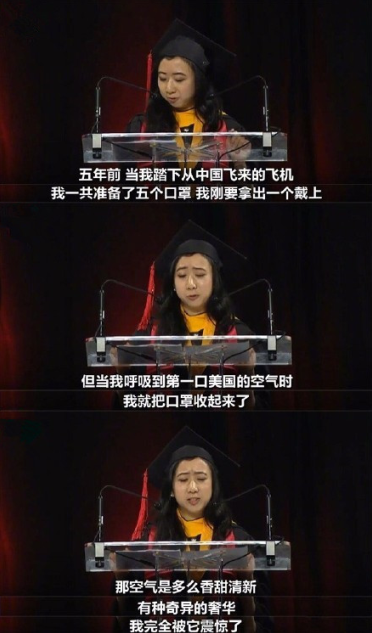 近日,在微博、朋友圈瘋狂轉發關于馬里蘭大學女留學生畢業演講中的“辱華”言論。
