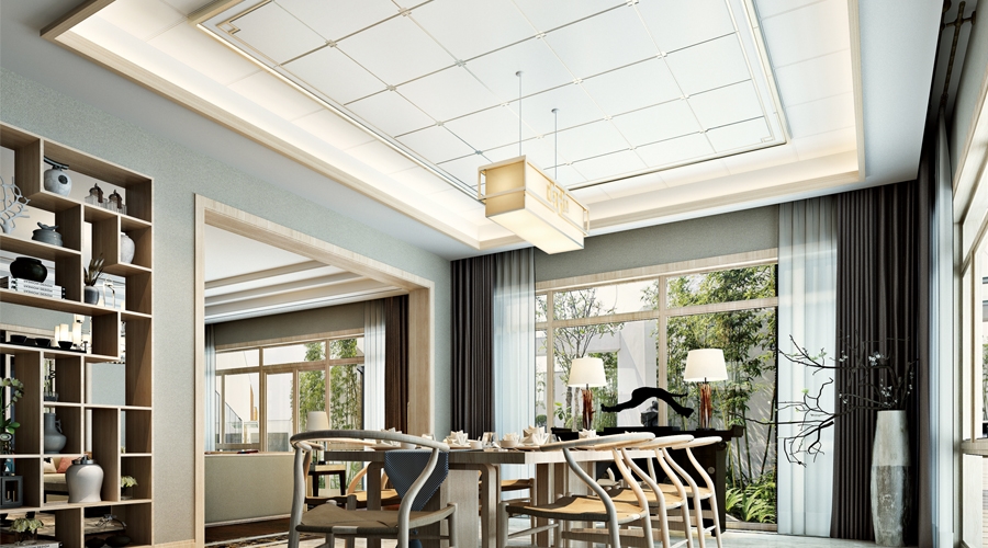 吊頂的風格可以奠定一個空間的整體基調。用帶有鏡面設計的吊頂,延展客廳空間,仰望“天空”的舒適感真的美滋滋。