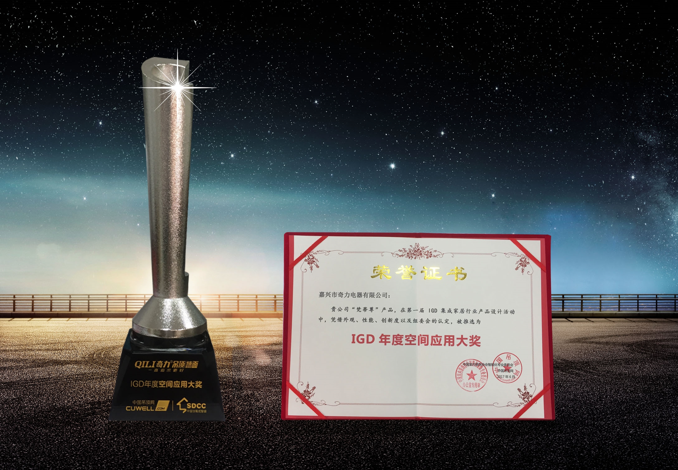 2017年6月9日,嘉興市奇力電器有限公司受邀參加“設(shè)·想”2017集成智裝產(chǎn)業(yè)聯(lián)盟創(chuàng)新論壇,并喜獲“IGD年度空間應(yīng)用大獎(jiǎng)”!